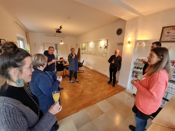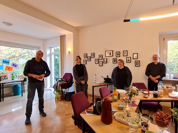 Mit einem Willkommensfrühstück gestartet, das uns alle mit seiner Fülle überfordert hat, aber dessen Energiespende Vasi später noch brauchen konnte, ging er schließlich am späten Nachmittag mit heißen Ohren nach Hause. Sooo viele Infos!!! Sooo viel Neues für unseren zukünftigen Geschäftsführer (ab Januar 2023), Vassili Konstantinidis, der gerade durch Martin Barth, unseren Noch-Geschäftsführer (geht Ende Januar 2023 in den wohlverdienten Ruhestand), eingearbeitet wird!!!